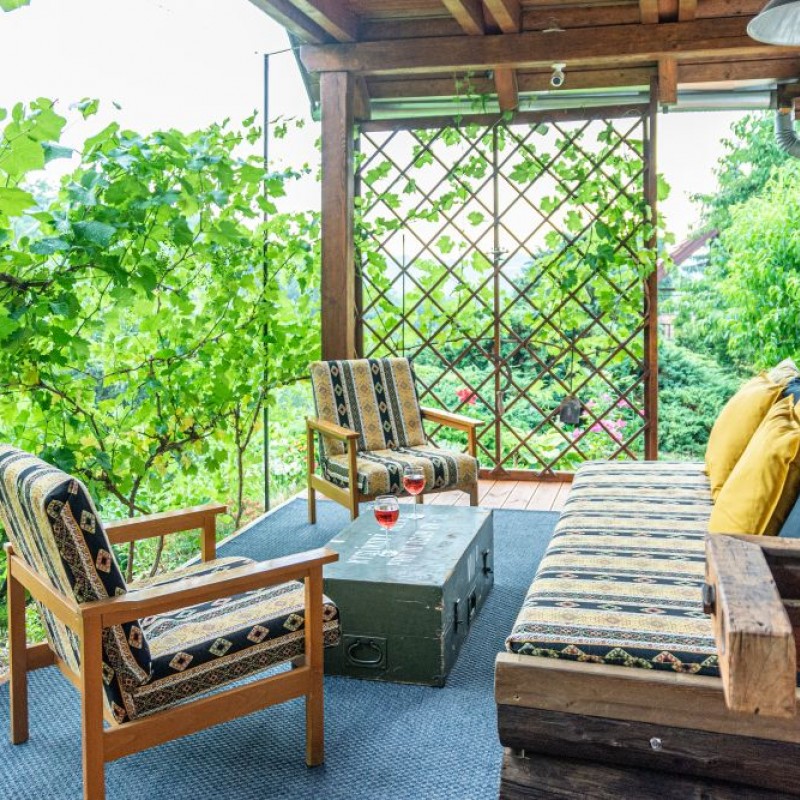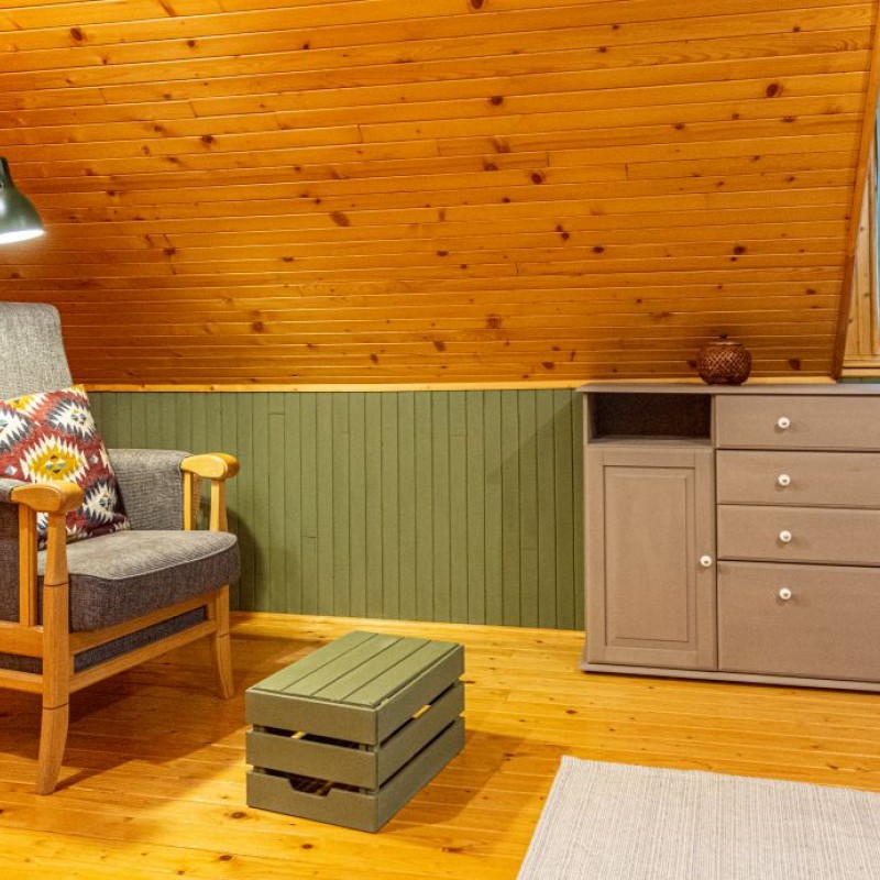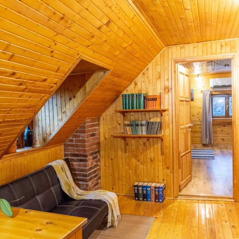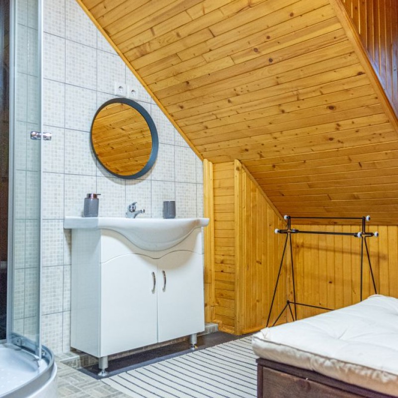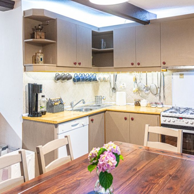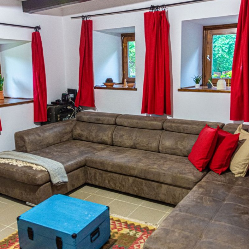 A több mint 100 éves parasztház, masszív, 100 cm-es falakkal nagyon kellemes klímát biztosít, mind télen, mind nyáron. A tetőtér fa burkolatú, légkondicionált, erkéllyel és kilátással a hegyekre. Az erdő közvetlen a szomszédunk, rengeteg madár lesz a lakótársad, a szarvasok eső után a telek végi vízmosáshoz járnak inni. A tetőtérben két légkondicionált hálószoba, fürdő + WC található, illetve a kisebb szobához egy panorámás terasz tartozik. A földszinten a meleget egy tömegkályha biztosítja, elektromos fűtés rásegítéssel. Ez a nappalit és az ebédlőt egyszerre fűti. A kályhát elég egyszer begyújtani naponta, ehhez minden eszközt biztosítunk. Gyors internetet és Netflix/HBO előfizetéssel rendelkező TV-t találsz a házban. Van egy kis erősítőnk is zenehallgatáshoz. A konyhánk sütés – főzéshez mindennel el van látva, a teraszon sütögetni tudsz.