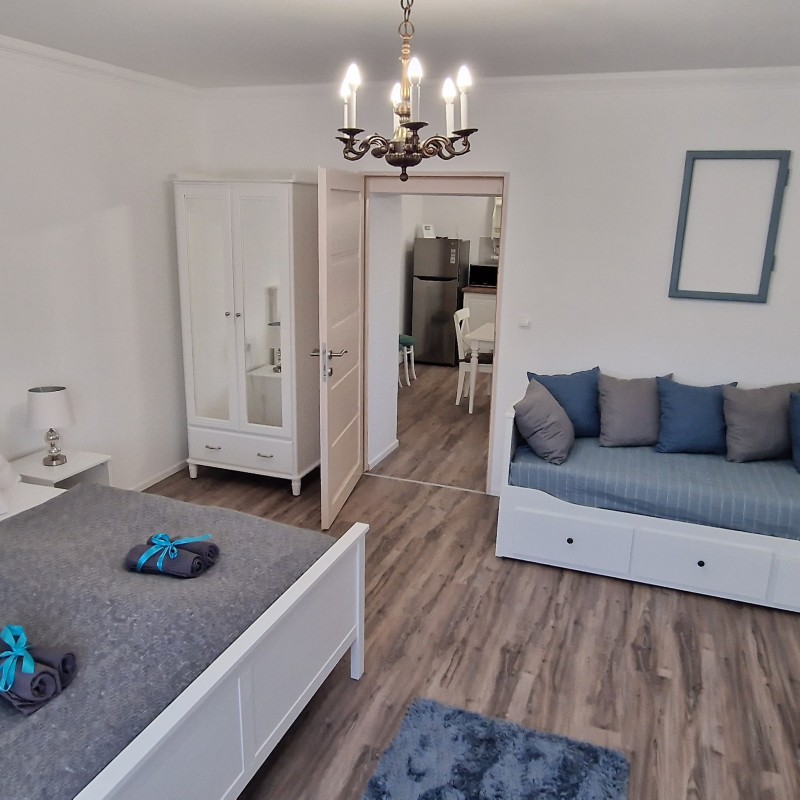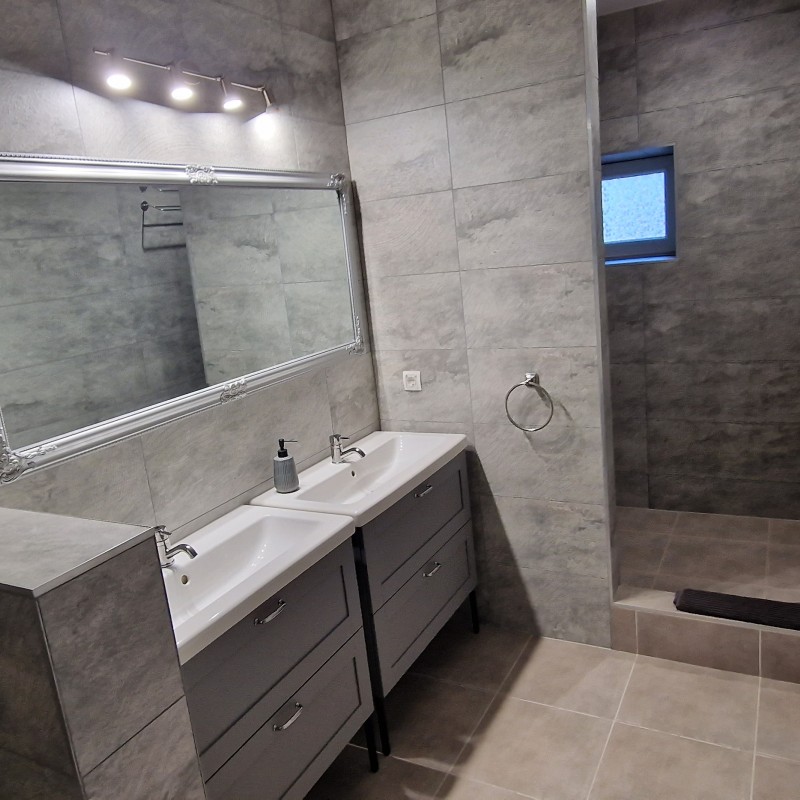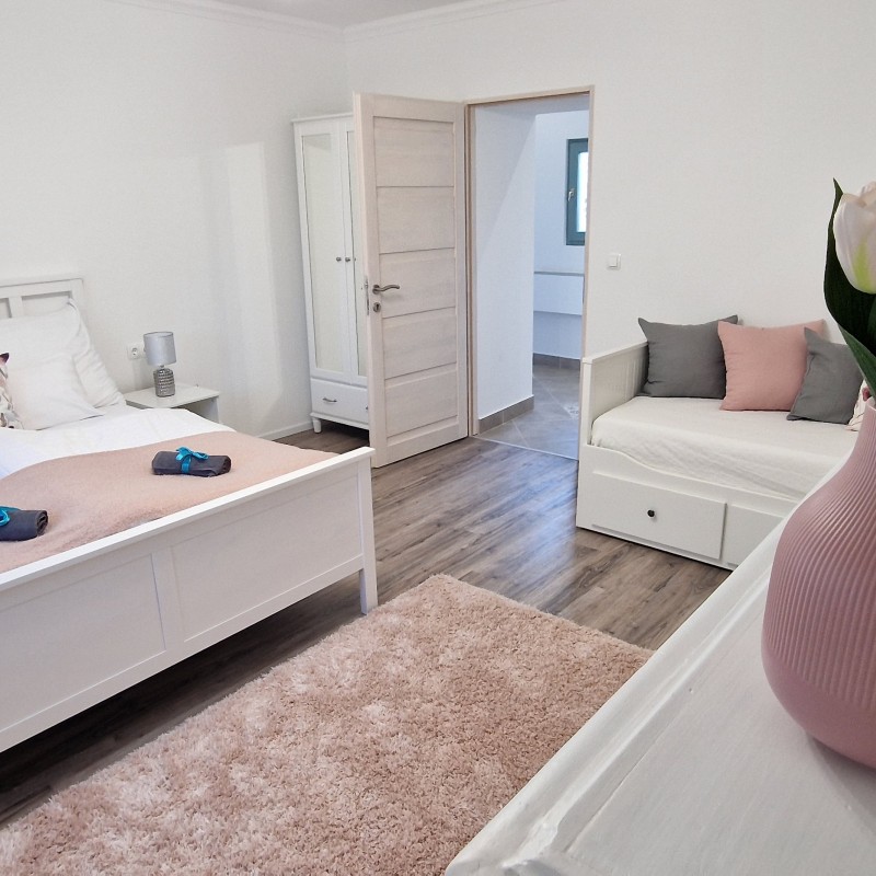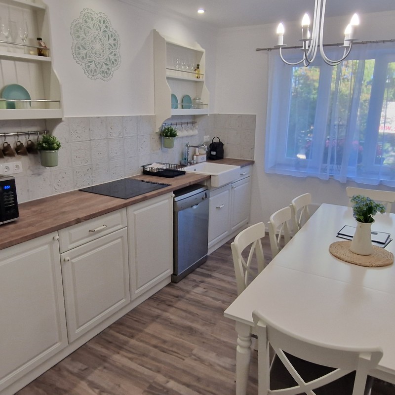 A 190m2-es házban, 3 hálószoba(klímával, smart tv-vel) felszerelt tágas konyha, zuhanyzós fürdőszoba áll a vendégek rendelkezésére.