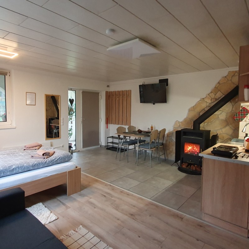 A házban 2 fürdőszoba, 2 szoba, jól felszerelt konyha ,kandalló, internet elérhetőség.