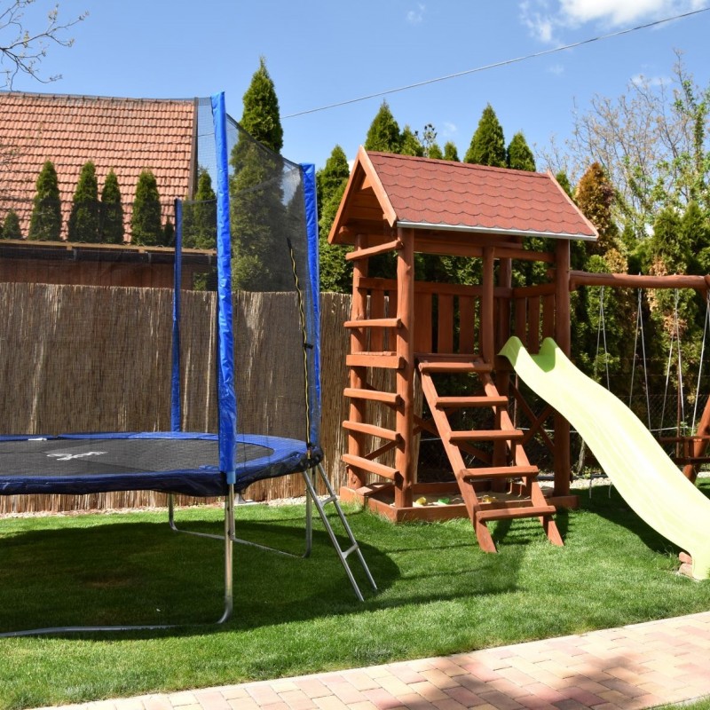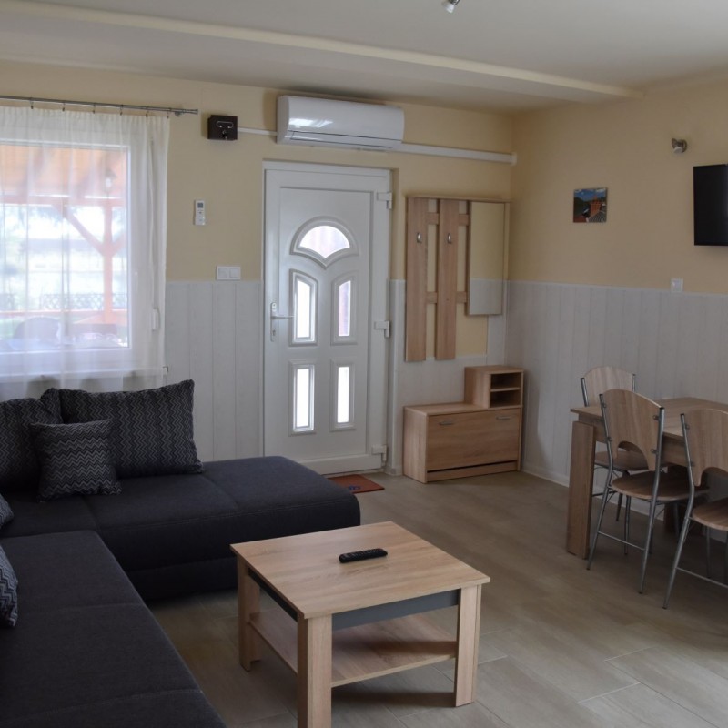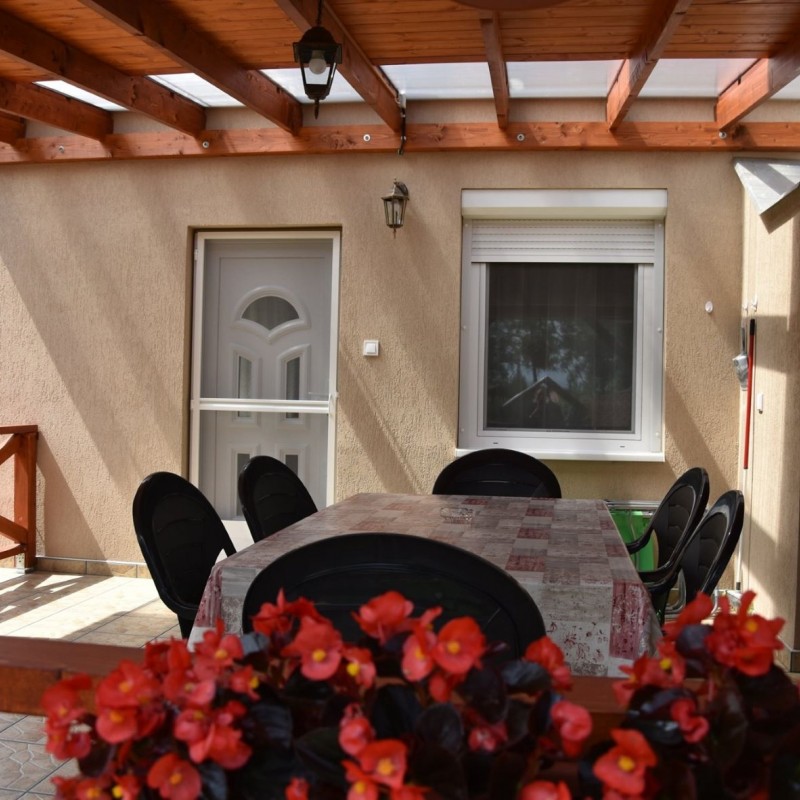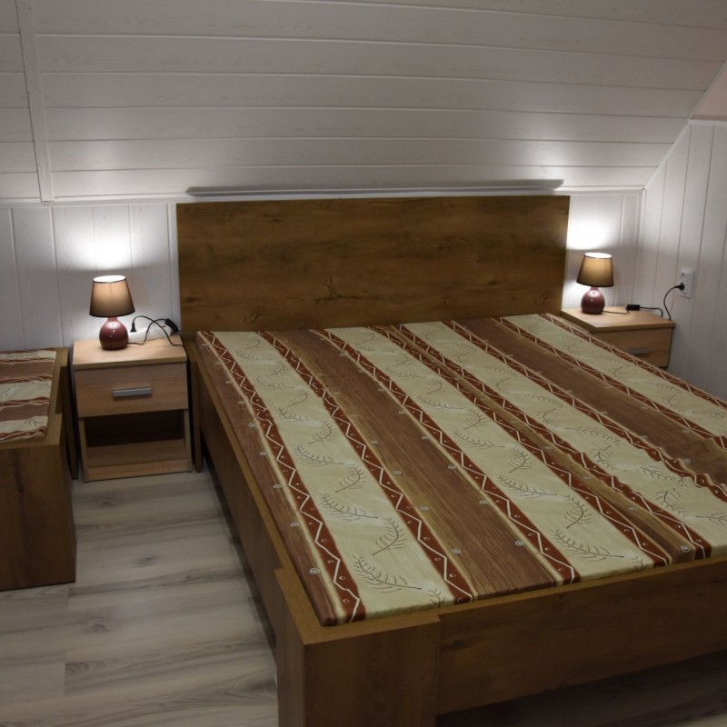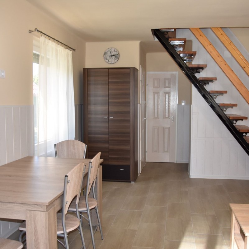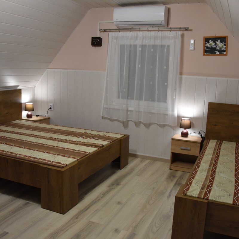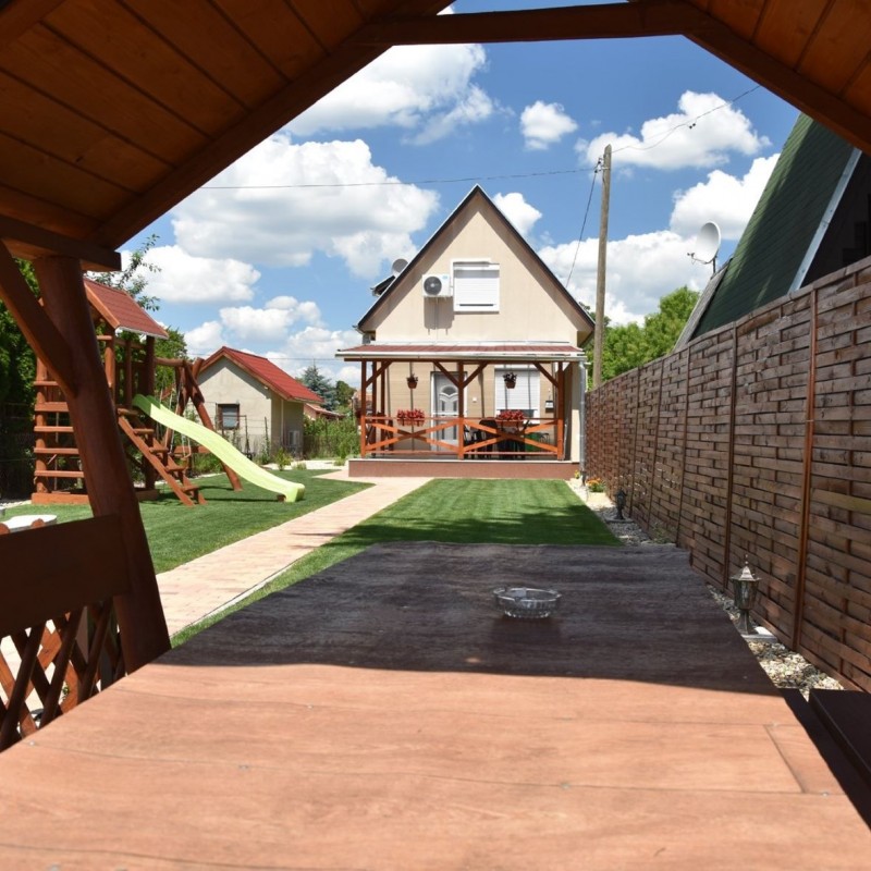 A közvetlen vízparti vendégházunk Békésszentandráson, a Füzes kert üdülősor 89. sz. alatt található. Két szintes, két szoba nappalis nyaraló 9 fő fogadására alkalmas. Az emeleten egy négy ágyas és egy három ágyas külön bejáratú hálószoba, a földszinten a nappaliban egy két személyes kihúzható kanapé található. A nyaraló 700nm-es telken, saját zárt parkolóval (5-6 autó), horgászati és fürdési lehetőséggel, saját 13 nm-es stéggel, nagy csónakkal, rönk hintaággyal, rönk paddal, gyermek játszótérrel (hinta, csúszda, homokozó), pingpongasztallal, trambulinnal, 6 személyes fedett vízparti kiülővel, kerti sütögetővel (szalonna sütési, bográcsozási és tárcsázási lehetőséggel) épített betongrill sütővel, kerti hangulatvilágítással és 20nm-es fedett vízparti panorámás terasszal rendelkezik. Bogrács, tárcsa, grillsütő, nyársak és kb. 10-12kg tűzifa a helyszínen vendégeink rendelkezésre áll. Az udvart egy kis zárható kerítés választja el a vízparttól, hogy a kisgyermekek is biztonságban legyenek. A vendégház hőszigetelt, minden helyiség külön-külön fűthető és teljesen légkondicionált. Fűtés és légkondicionálás külön fizetendő, amennyiben igény van rá. Minden ablakon redőny és szúnyogháló található, teljesen felszerelt konyha, a nappaliban és az egyik hálószobában síkképernyős televízió, tusolós fürdőszoba, két wc, valamint ingyenes wifi áll a vendégek rendelkezésére. A vendégház vezetékes vízzel ellátott! Kérésre etetőszéket, babakádat, utazóágyat tudunk térítésmentesen biztosítani. A közelben gyalogosan megközelíthető: étterem, teniszpálya, söröző. Háziállat nem hozható!