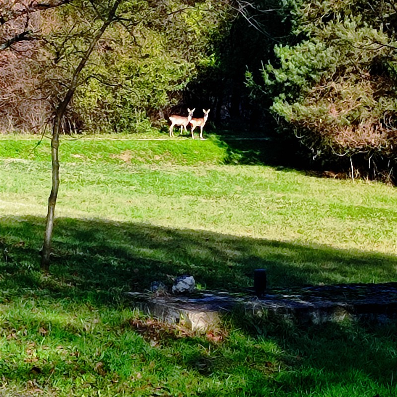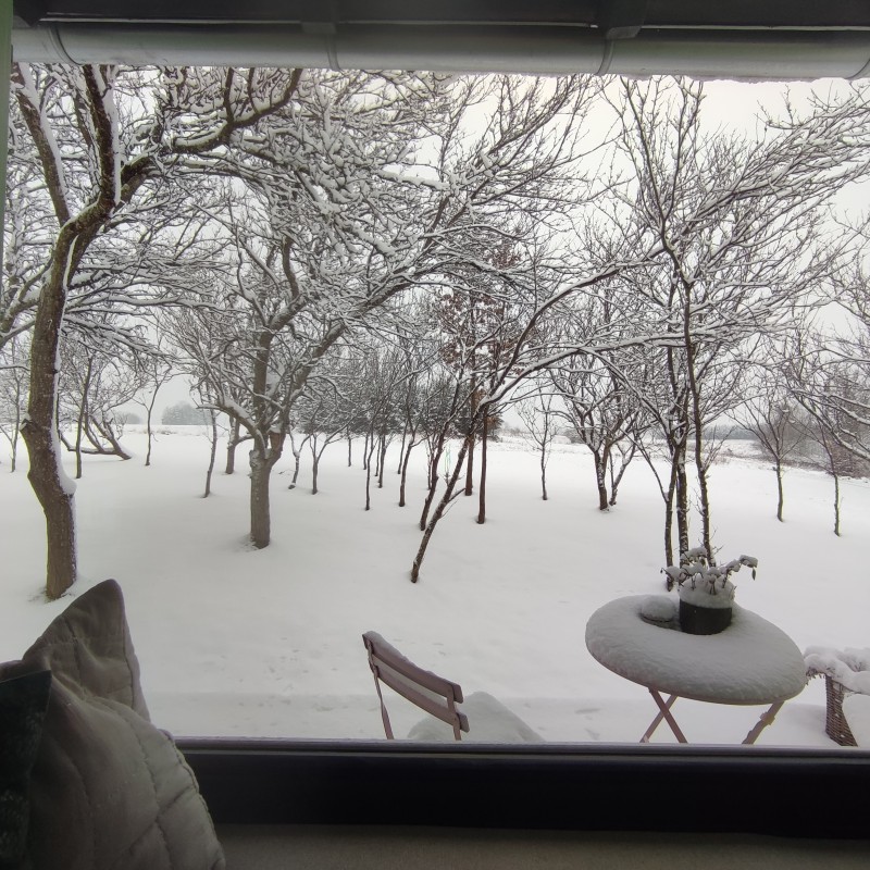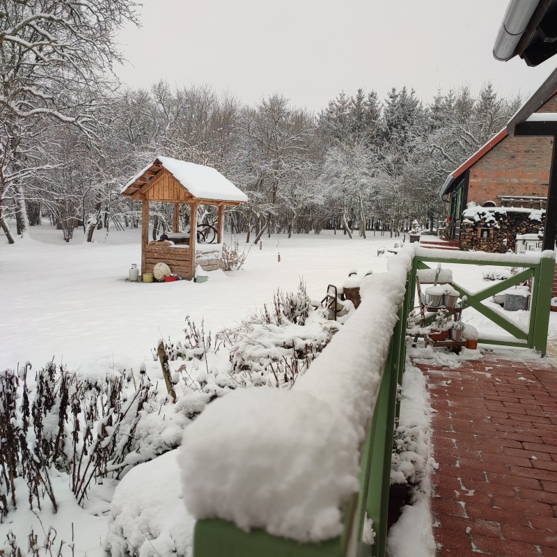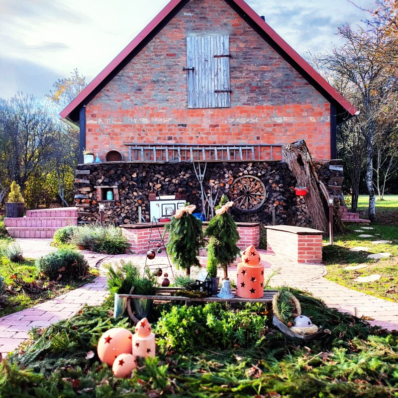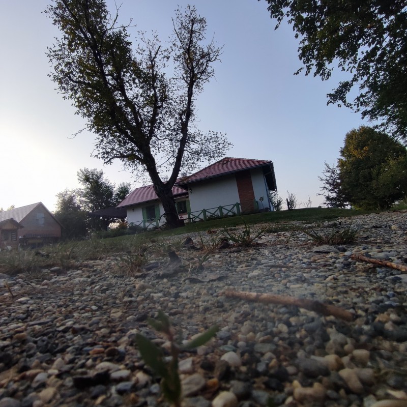 A házat közel egy hektárnyi saját terület veszi körül fákkal ,kis mezővel.