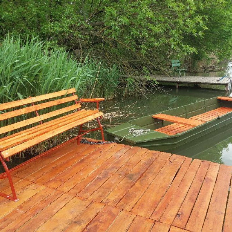 A kert végéből nyílik a kijárat a paddal felszerelt stégre, mely napozásra, horgászatra kiválóan alkalmas, de aki kedveli a vizet fürödhet, csónakázhat is a holtág vizében. Csónak használata ingyenes!