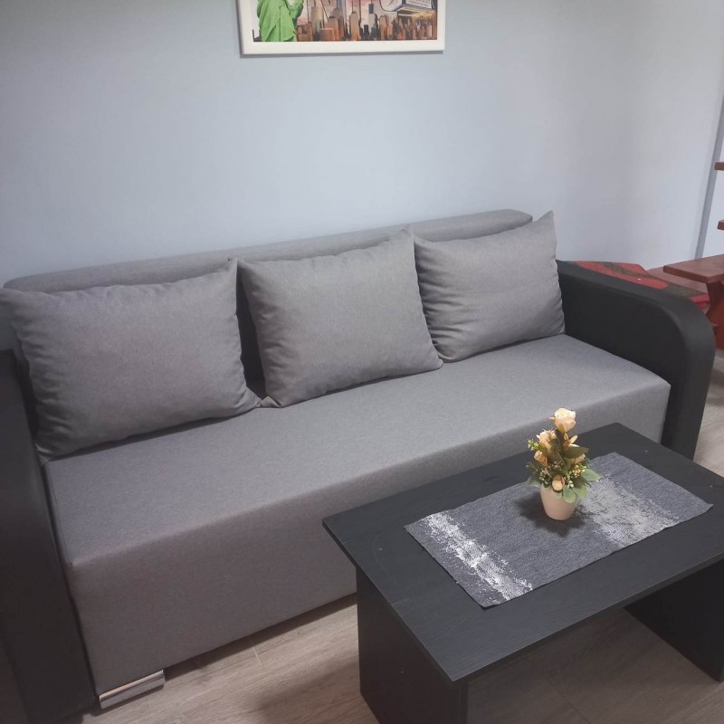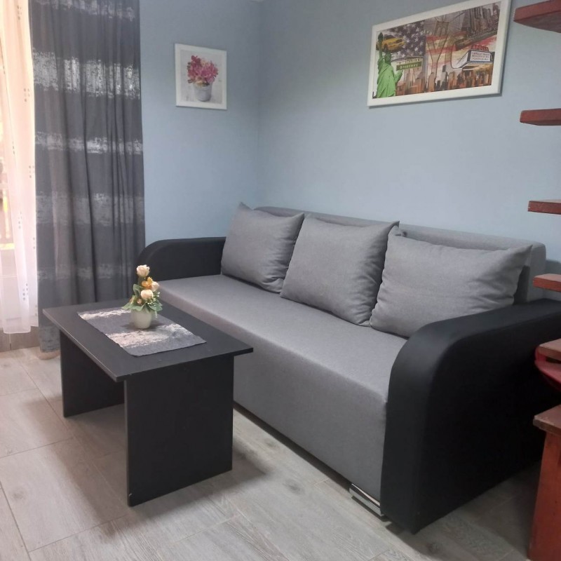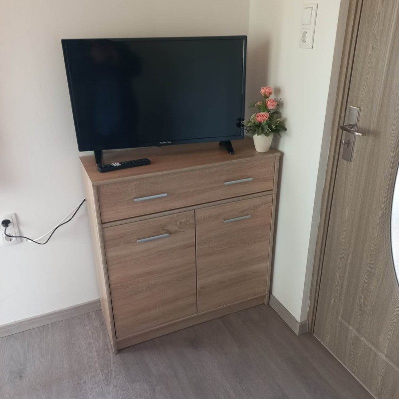 A ház földszintjén egy nappali található, melyben egy sarok garnitúra nyitható kétszemélyes ággyá, valamint egy szintén kétszemélyes kanapé van szemben a nagyméretű LCD TV-vel, melynek csatornáit a mindigtv biztosítja.