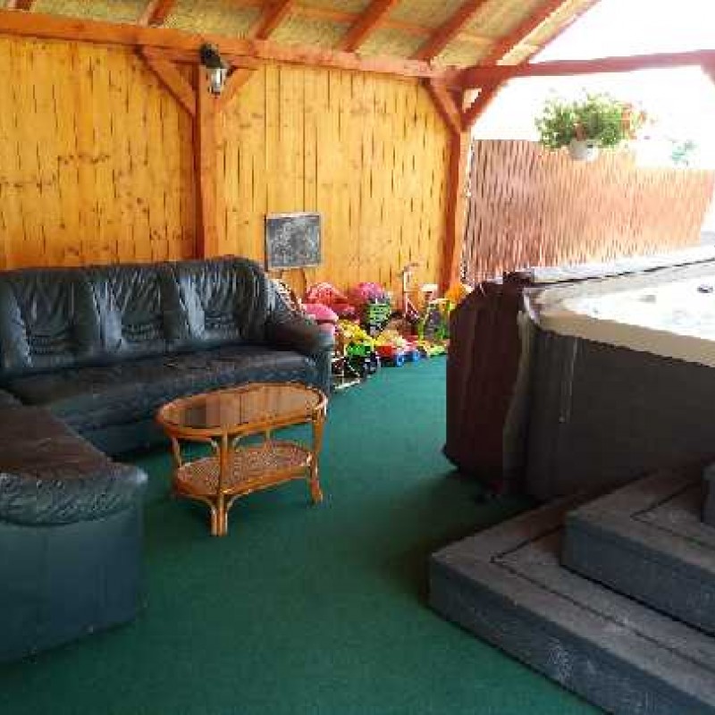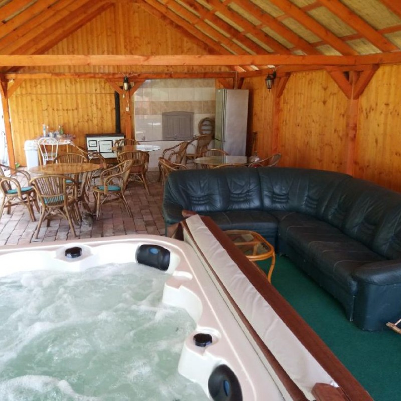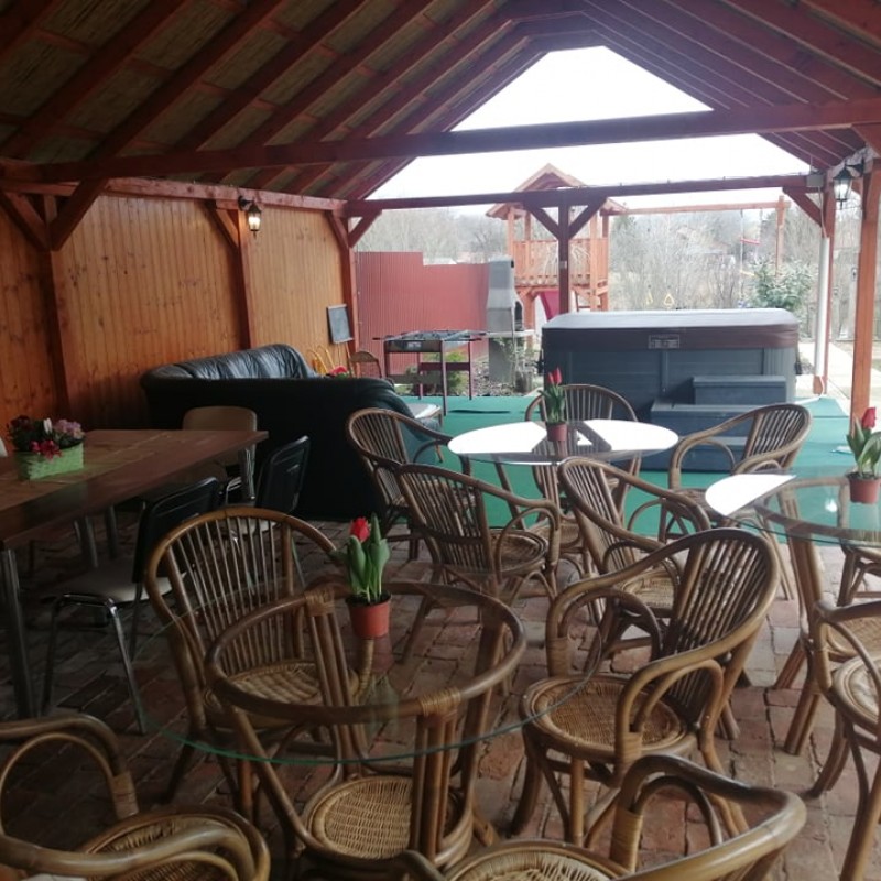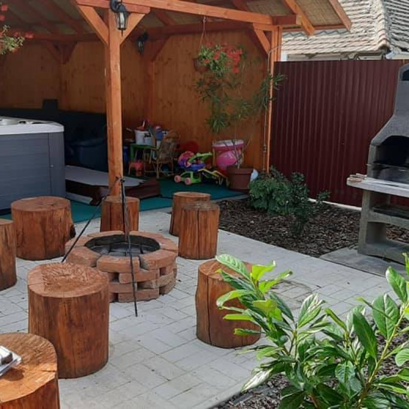 Az udvarban kerti filagória, kemence, grillező, szalonnasütő várja a pihenni vágyókat.