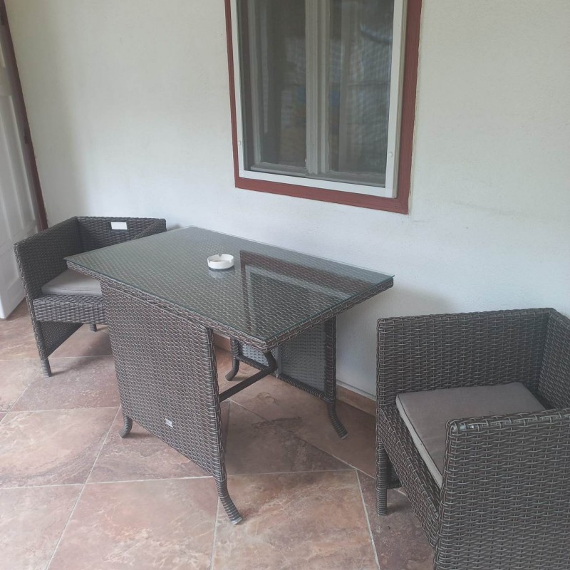 A ház vendégeit egy hatalmas kültéri, fedett terasz fogadja, mely tökéletes társasági színtér. Itt lehetőség van dohányzásra, sziesztázásra.