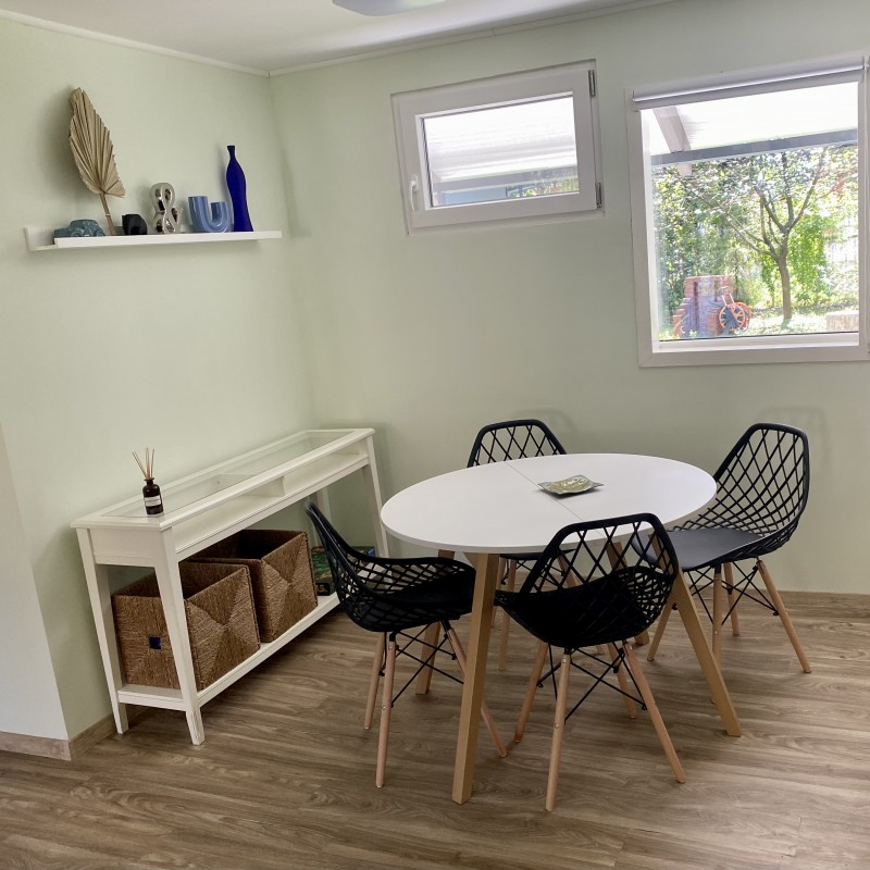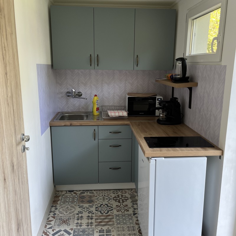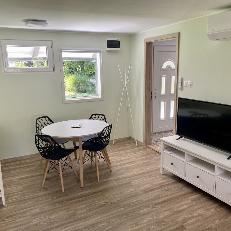 A hangulatos kiasházban 2-3 fő számára kínálunk kényelmes szállást teljesen felszerelt konyhával. Az otthonos belső tereket egy eldugott kis terasz egészíti ki a ház mögött, ahol a reggelit vagy egy esti pohár bort is élvezheti a szabadban.