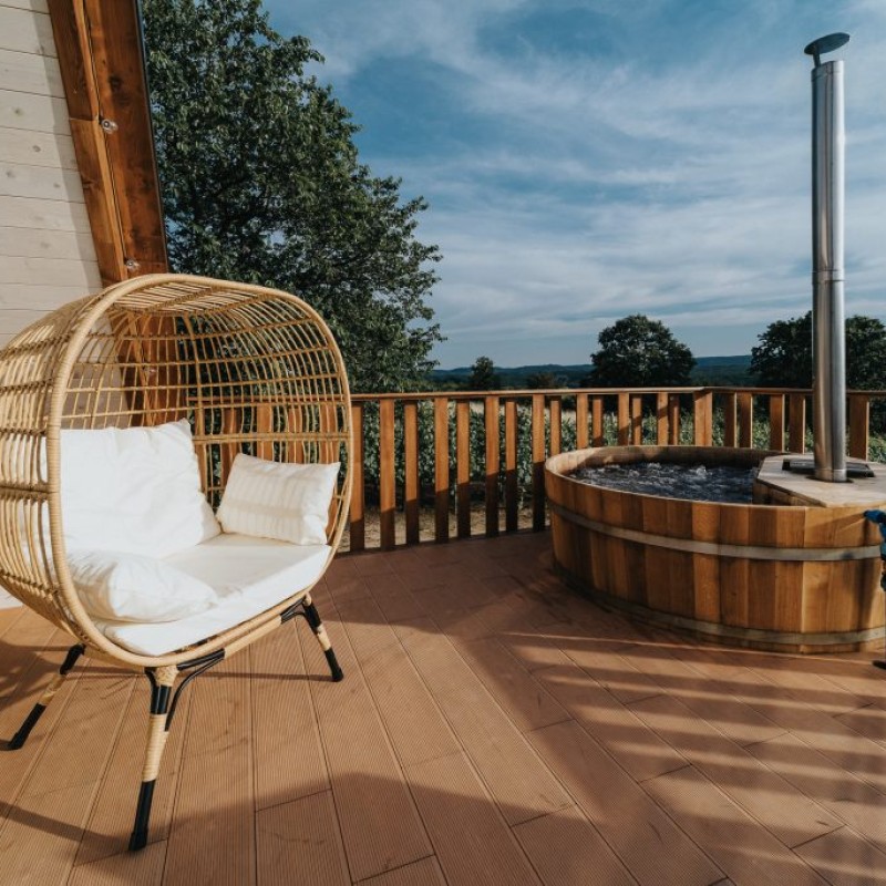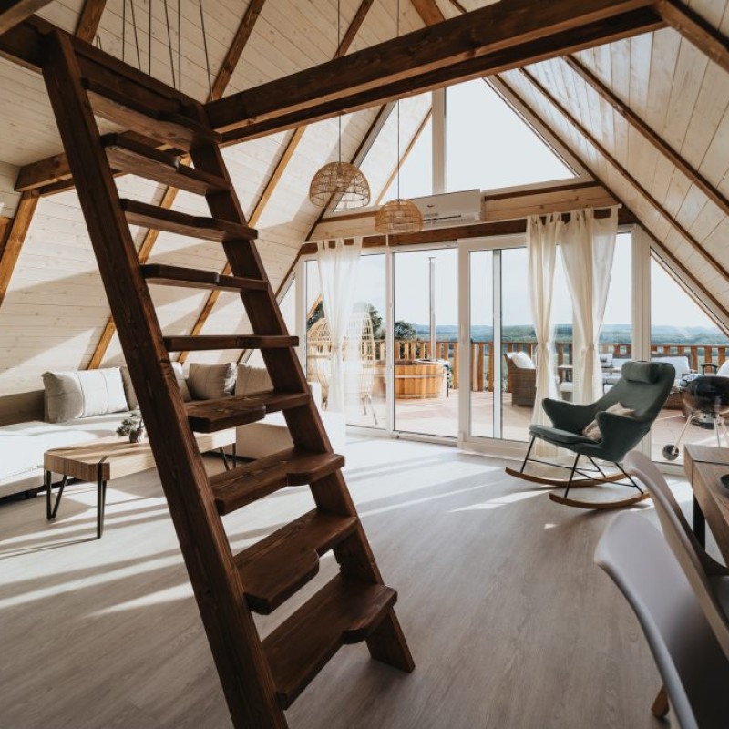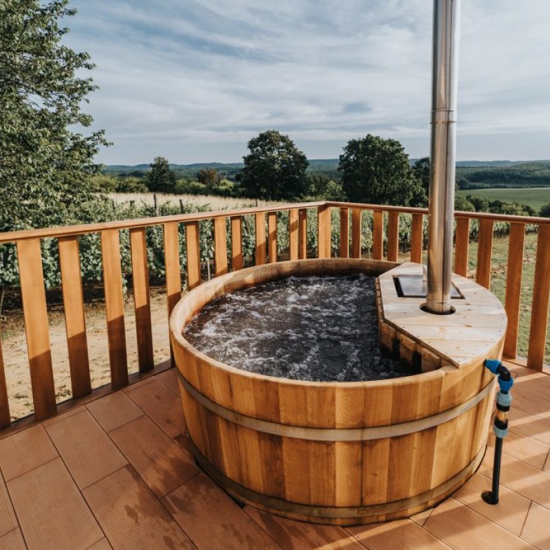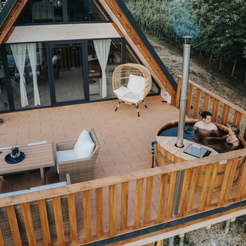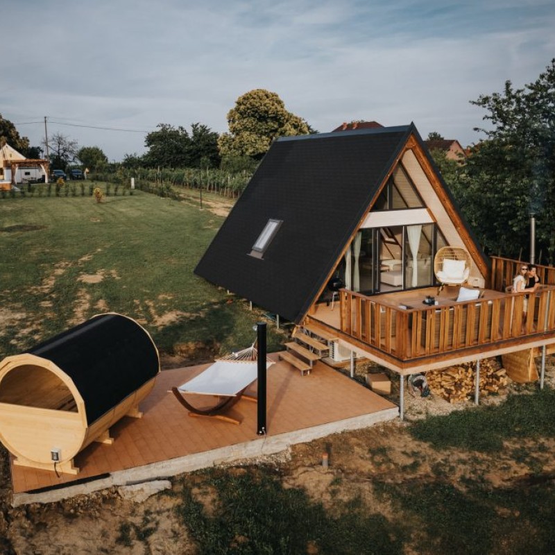 A delux apartman a híres Zalai dombságban található a szőlőhegyen, távol a lakóövezettől, ahol nincsenek szomszédok, nincsen kerítés… itt az ember igazán szabadnak érezheti magát úgy, hogy közben mégis minden elérhető távolságban van. A ház hatalmas ablakainak köszönhetően mindig világos. A 4 fős apartman családoknak, 4 fős társaságnak is kényelmes. A galérián franciaágy, míg a földszinten kényelmes, kinyitható 2 fős kanapé várja a vendégeket. A klímának köszönhetően nem kell tartani a hőségtől az emeleten sem. A konyhában alapfűszerek mellé frissen őrölt kávét, és 1 üveg ízletes bort is bekészítettünk az ebédhez, vagy esti beszélgetéshez. A kertben fa dézsa és privát szauna található.