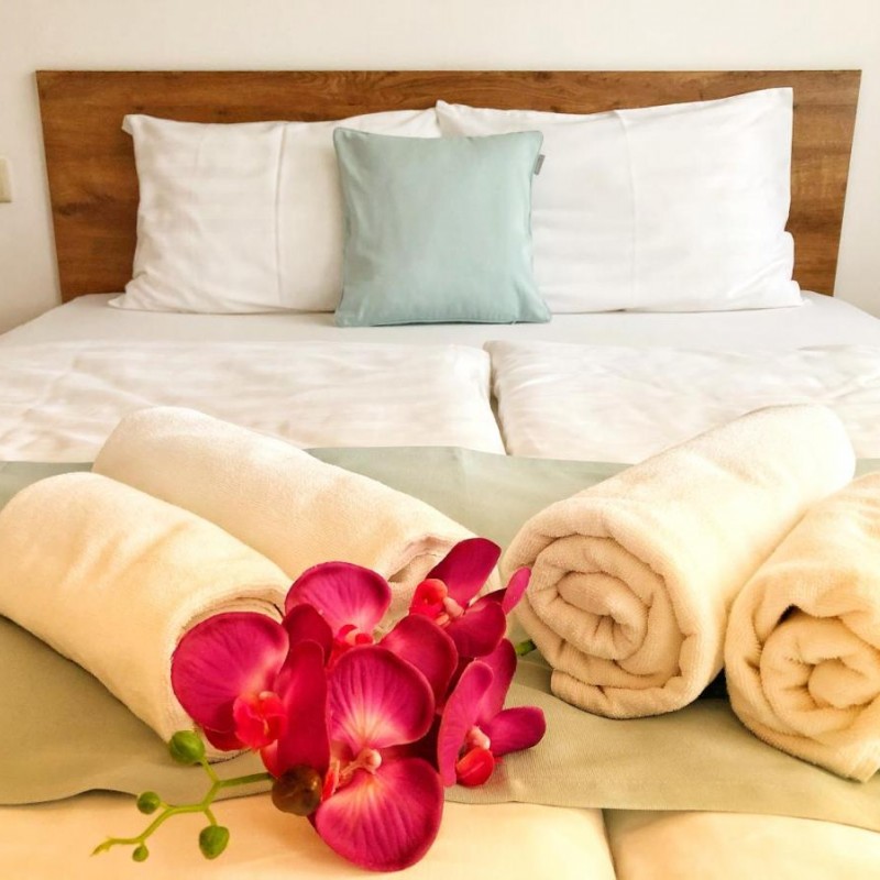 Felszerelt stúdió apartmanokkal és egy kicsit extrább felszereltségű deluxe apartmannal állunk a Vendégek rendelkezésére, hogy pihenés közben is teljesértékűen élvezhessék az otthon kényelmét. WIFI kapcsolat és síkképernyős LED TV, minden apartmanban zuhanyzóval ellátott fürdőszoba, és konyhasarok biztosítja a kényelmet. Hőmérsékletük egyenként szabályozható, így télen-nyáron megfelelő klímát biztosítunk a nyugodt, kényelmes pihenéshez. Minden Vendéget bekészített ágyneművel, ágyneműhuzattal és törölközővel várunk. Igény esetén gyermekágy és etetőszék kérhető térítésmentesen. Vendégeink egy hálóteres stúdió apartmanjaink közül választhatnak, valamint lehetőség van deluxe elnevezésű, egy szobával, nappali-konyhával, erkéllyel rendelkező apartmanunk foglalására. Zárt udvarunkon lévő filagóriánk ideális helyszínt biztosít egy délutáni hűsöléshez a szökőkút mellett, a fák árnyékában. Udvarunkon grill, főzősarok, babzsákok, kerti ülőalkalmatosságok garantálják a kényelmet. Különböző szabadtéri játékokkal kedveskedünk kisebb-nagyobb Vendégeinknek. Darts, ping-pong asztal, tollas, társas-és kártyajátékok használatát biztosítjuk. Szállásunkon kerékpárok kölcsönözhetők. Kamerával megfigyelt udvarunkon saját bringáját is nyugodtan tárolhatja. Az apartmanok és az udvar kialakítása során arra törekedtünk, hogy minden igényt kiszolgáljanak. Igyekszünk folyamatosan fejleszteni, új eszközöket beszerezni, hogy Vendégeinknek emlékezetes legyen az itt töltött idő.