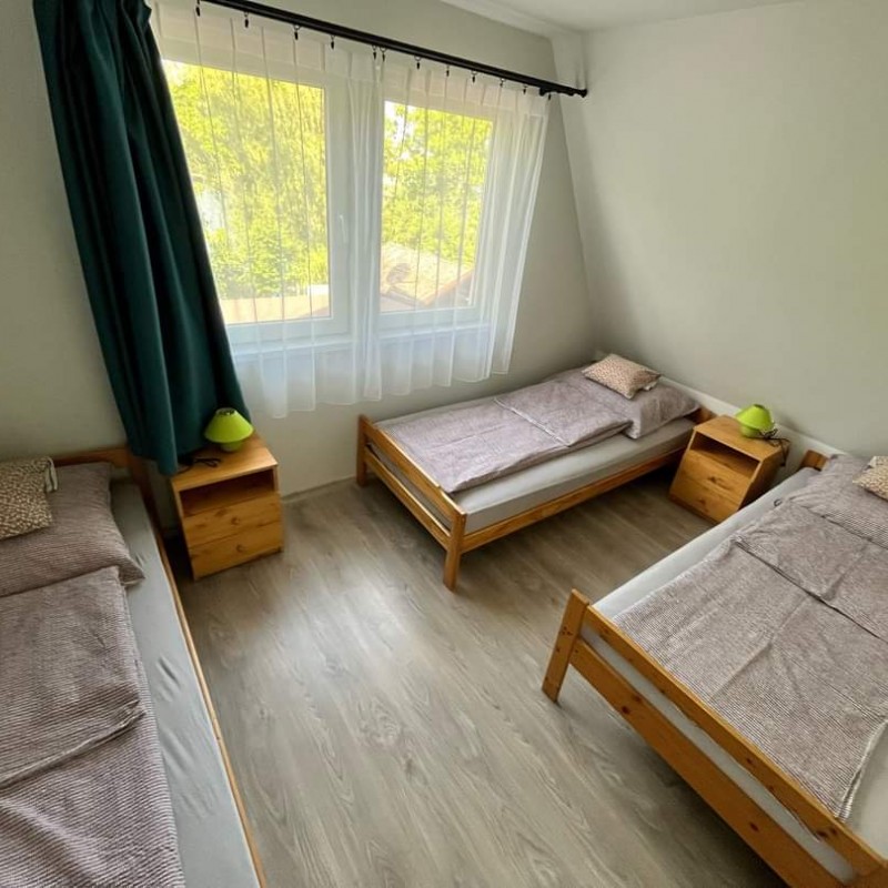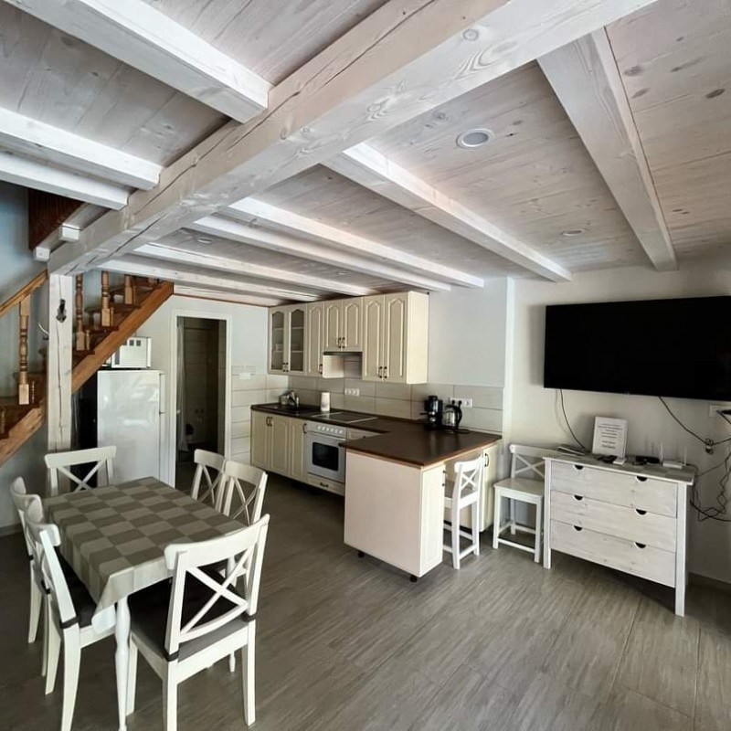 A két szintes tágas nyaraló 6+2 fő kényelmes fogadására alkalmas.