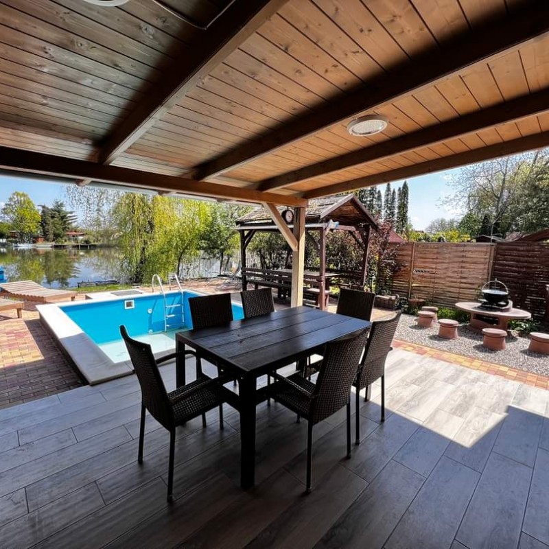 - saját vízpart, csónak, vízibicikli és stég világítással