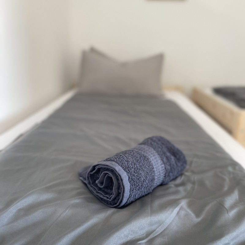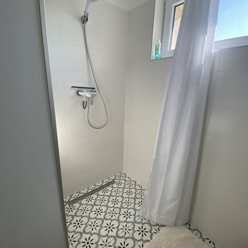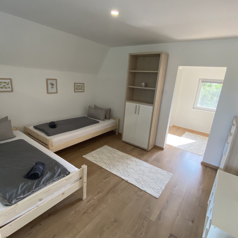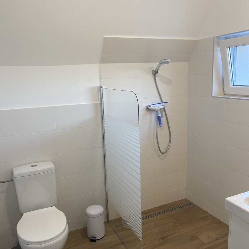 hálószoba, összesen két fő részére. Ugyancsak a földszinten található egy zuhanyzó WC-vel.