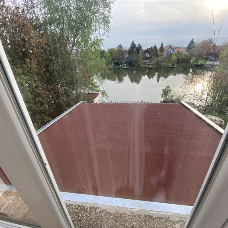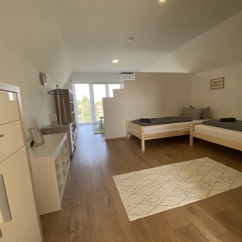 rész két darab egyágyas elhelyezéssel, valamint a fal mögött a Körösre néző nappali rész, ahol egy