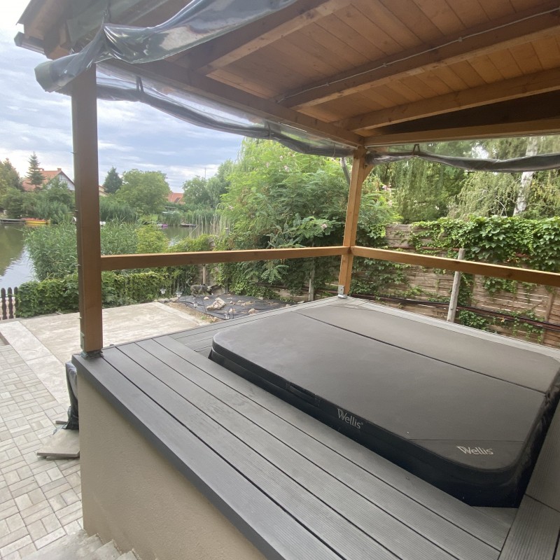 számára, valamint napágyak a napfürdőzésre vágyóknak.A későbbiekben itt kerül kialakításra a Körösre kilátással lévő szauna. A part a gyerekek védelmében