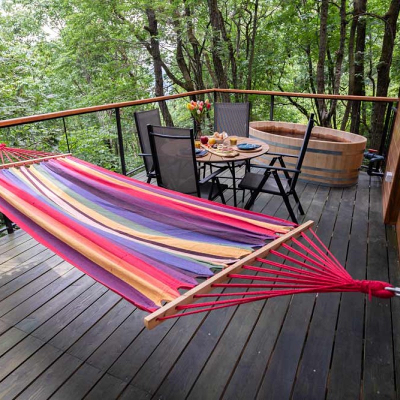 A Kistölgy vendégház az erdő közepén, távol a lakóövezettől, fák lombjai között bújik meg ahol tényleg csak ti vagytok és csodás Dunakanyari kilátás. A mesebeli házikó nem csak a külsejével és a környezetével vesz le a lábadról, de belépve az ajtón is úgy fogod érezni magad, mint egy mesebeli világban. Ez az a hely, ahol elfelejtheted minden búdat-bánatodat, ahol átadhatod magad a természetnek, ahol őzikéket, vaddisznókat leshetsz meg reggelente és madárcsicsergős reggeli kávét fogyaszthatsz a lombok alatti teraszon.