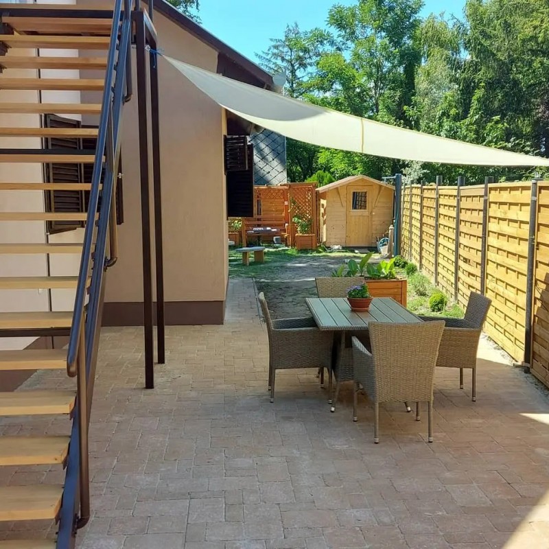 A partközeli Írisz Apartmanházban 2 darab (4 és 6 fős) különálló, külön utcáról nyíló, modern berendezésű apartman található maximális felszereltséggel, privát teraszokkal, kerti pihenővel és parkolási lehetőséggel. Az apartmanház egésze is bérelhető, maximum 10 fő részére.