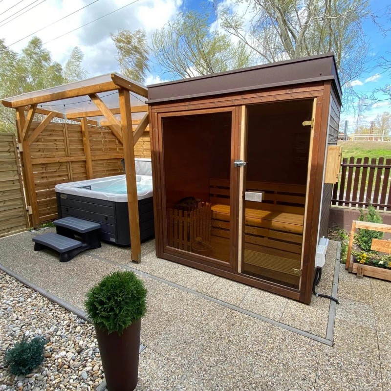 Az apartmanház kültéri Wellness részlegén télen-nyáron prémium kategóriás JAKUZZI és fényterápiás FINN SZAUNA várja a pihenni vágyókat. Áraink a választott időszak, az apartman és a létszám függvényében változnak.