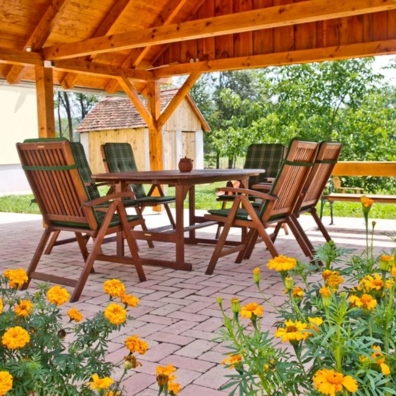 A fedett kerti kiülőben lehetősége van reggeli kávéját madárcsicsergés mellett elfogyasztani,
