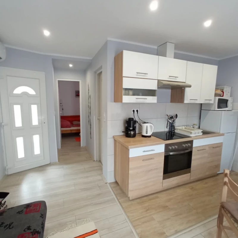 - teljesen felszerelt konyha (kávéfőző, vízforraló, mikró, kenyérpirító)