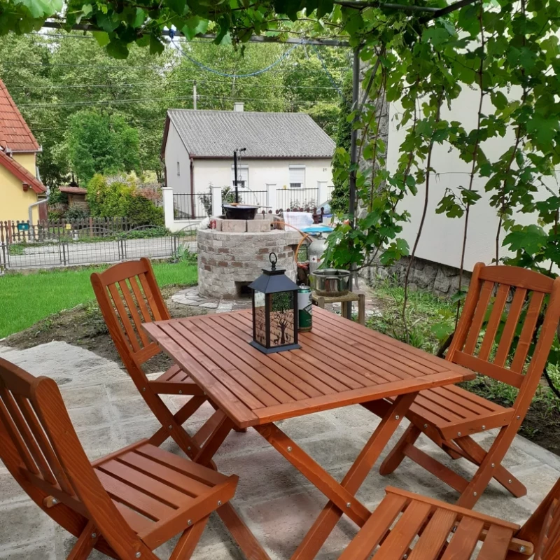 Az udvaron szőlő lugas, bográcsozásra, tárcsázásra, szalonnasütésre alkalmas hely lett kialakítva.