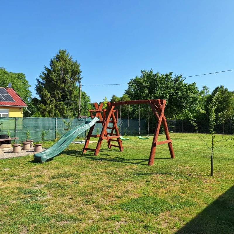 Kisgyermekek részére játszótér, hintával, csúszdával áll rendelkezésre.