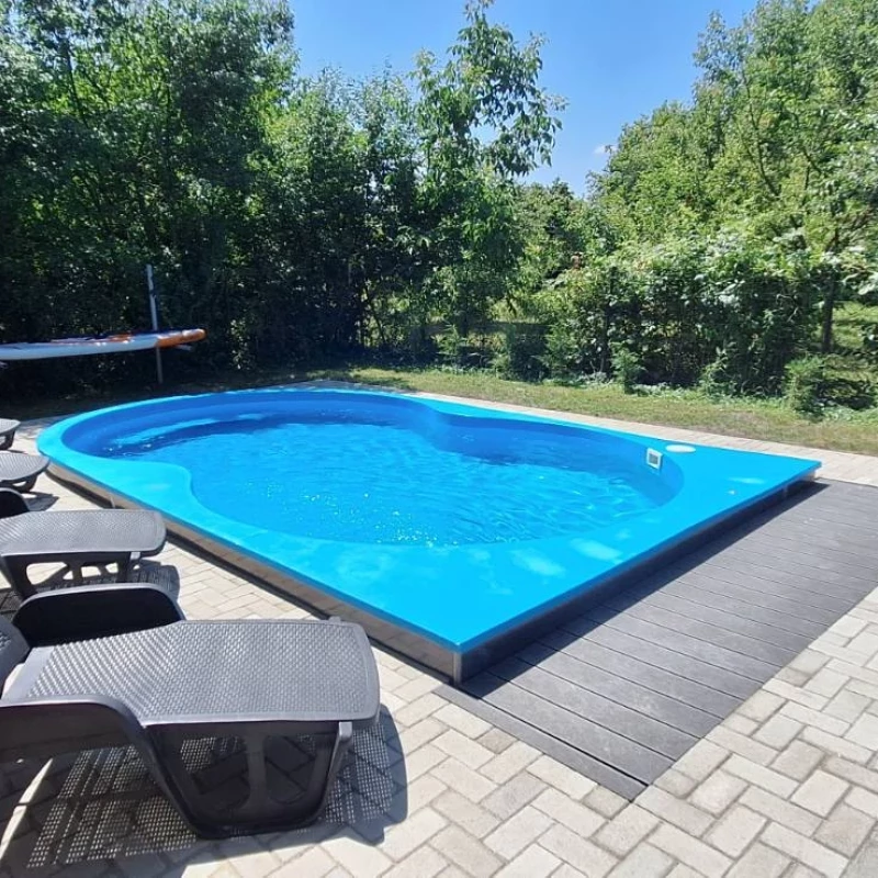 Újonnan épült, süllyesztett, fűthető medencével, jacuzzival és szaunával rendelkező apartman Szarvason, Nyúl-zugban, a Kákafoki holtág mellett.