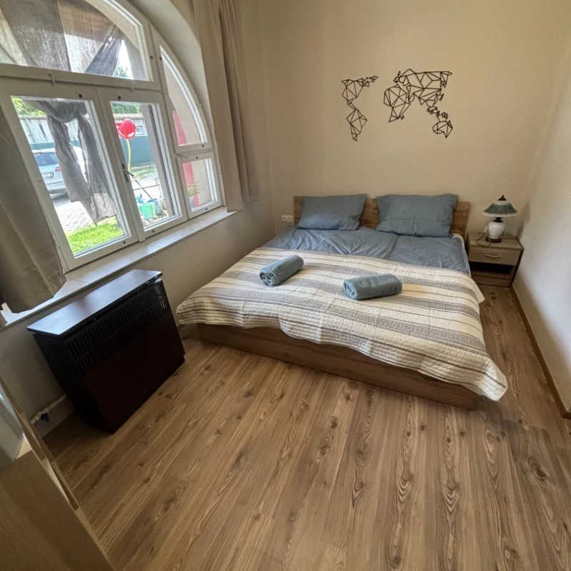 ✅ Kényelmes pihenés – egy hálószoba franciaággyal, plusz egy kihúzható kanapé a nappaliban további 2 fő részére