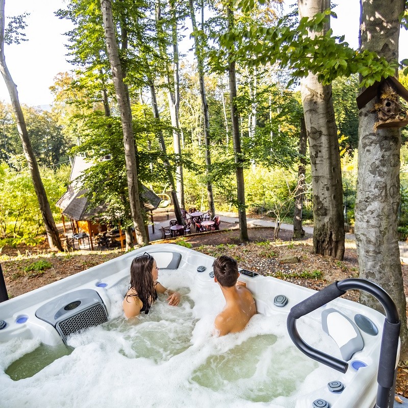 Vendégeink az egyedülálló erdőwellnesst is kipróbálhatják. A közvetlen erdőkapcsolattal rendelkező területen egy szabadtéri panoráma és zuhanyzót jakuzzit helyeztünk el, ahol a kényeztető wellness élményt megfűszerezi a friss hegyi levegő, az erdő minden évszakban varázslatos színei és a háborítatlan csend.