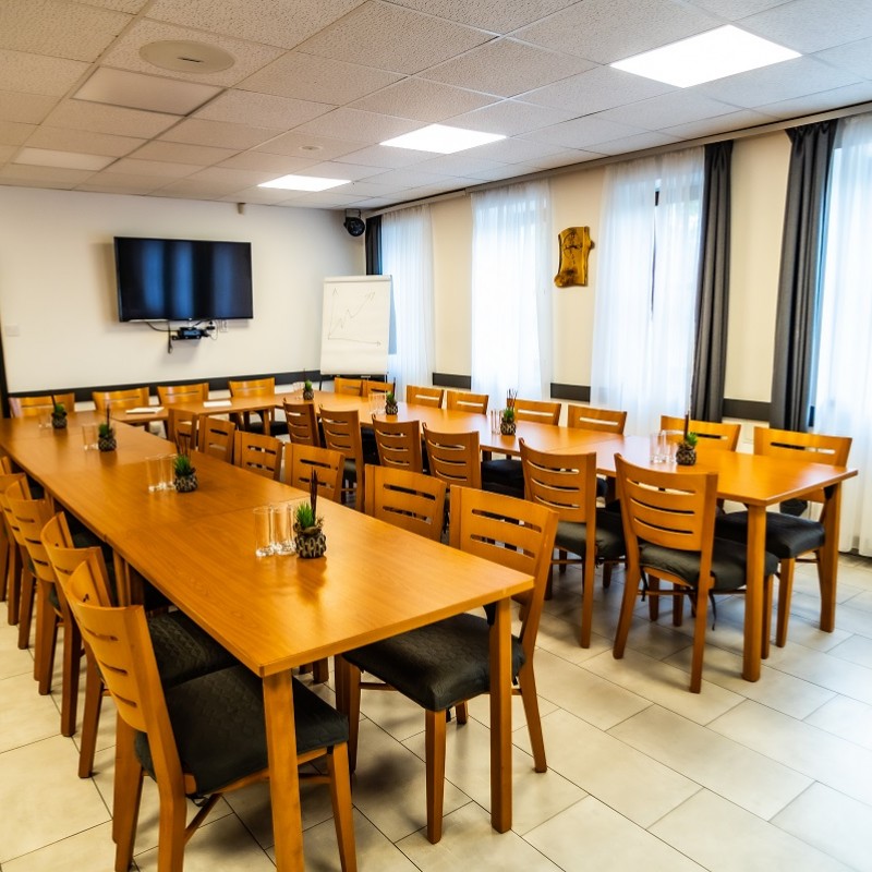 A háromszintes épület elbűvölő természeti környezetben, háromcsillagos körülményekkel várja a nyugalomra, pihenésre vágyókat, az aktív kikapcsolódás szerelmeseit és a csapatösszetartásra érkezőket.